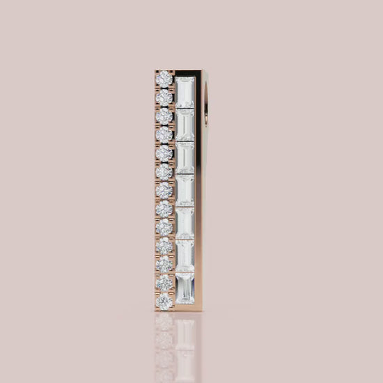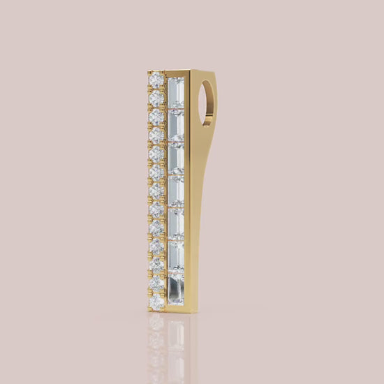 The stunning Baguette and Round Diamond Vertical Bar Pendant Necklace in White Gold will bring everlasting beauty to your jewellery collection. This gold diamond pendant has been skilfully designed to reflect light and enhance your fashion appearance. Jebij provides multiple design options that match different occasions when you choose between yellow gold's warm glow, white gold's smooth design, and rose gold's opulent colour.