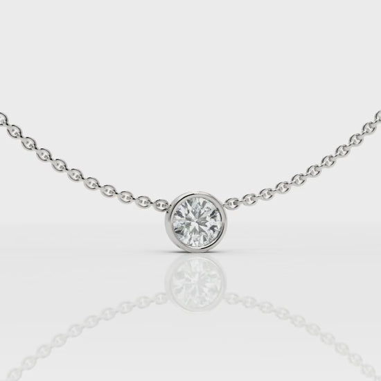 Bezel Set Solitaire Diamond Pendant Necklace in White Gold