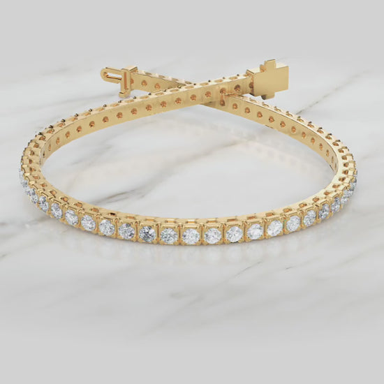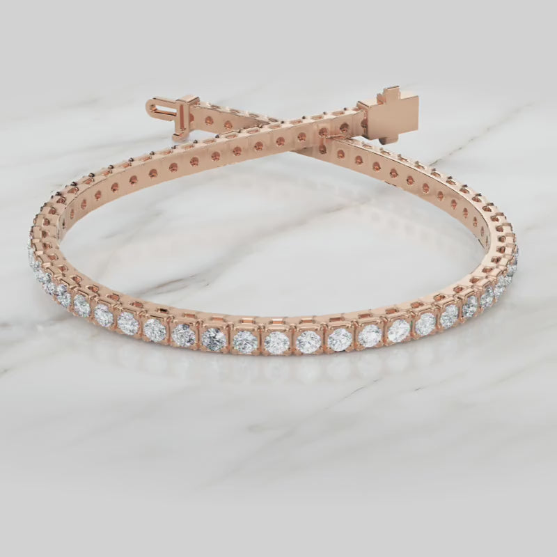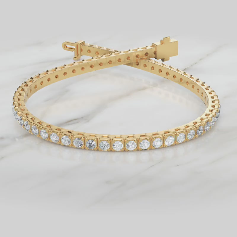 The elegant Sterling Silver Round Cut CZ Tennis Bracelet will improve your current collection. Jebij offers multiple bracelet designs, which include yellow gold bracelets that provide warm tones, white gold bracelets with their modern look, and rose gold bracelets that display their luxurious shine. The gold bracelet collection features precisely designed pieces that provide enduring fashion value as essential items for your jewellery collection.
