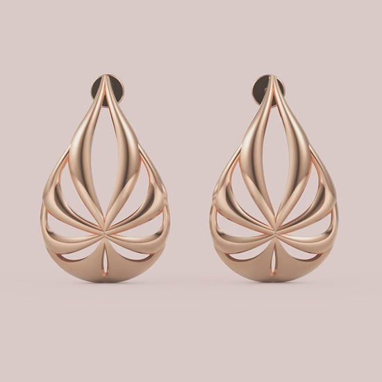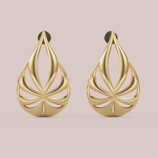 Gold Teardrop Leaf Cutout Stud Earrings 15mmendoftext