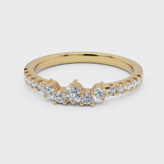 The Five Stone Diamond Ring with Pave Band in White Gold, which uses material, provides a classic design that suits all types of events. The rose gold diamond ring, the white gold diamond ring, and the yellow gold diamond ring all present elegant and fashionable options. The gold diamond ring features detailed designs and top-notch craftsmanship, which guarantee its status as a beloved item for many years.
