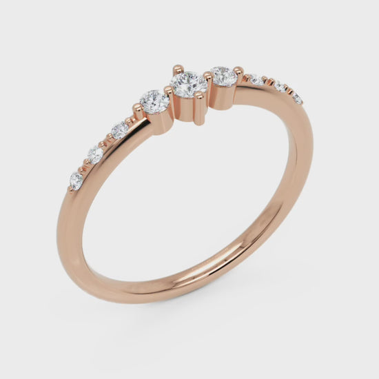 The Curved Diamond Wedding Band White Gold Stackable Ring, which uses material, provides a classic design that suits all types of events. The rose gold diamond ring, the white gold diamond ring, and the yellow gold diamond ring all present elegant and fashionable options. The gold diamond ring features detailed designs and top-notch craftsmanship, which guarantee its status as a beloved item for many years.