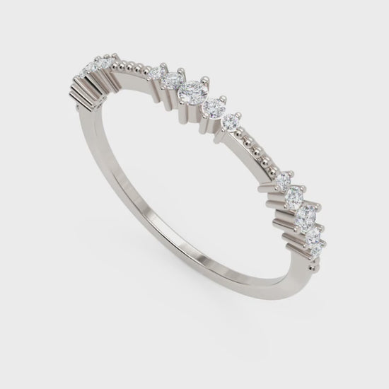 Delicate Diamond Baguette and Round Stackable White Gold Band Ring