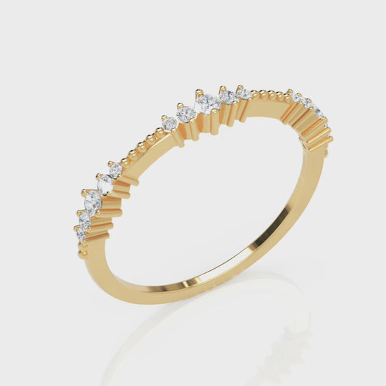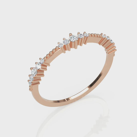 The Delicate Diamond Baguette and Round Stackable White Gold Band Ring, which uses material, provides a classic design that suits all types of events. The rose gold diamond ring, the white gold diamond ring, and the yellow gold diamond ring all present elegant and fashionable options. The gold diamond ring features detailed designs and top-notch craftsmanship, which guarantee its status as a beloved item for many years.