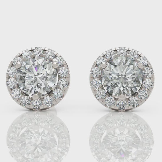 Diamond Halo Stud Earrings in White Gold