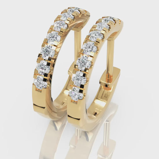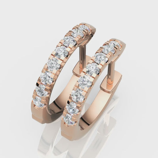 Our collection includes stunning yellow gold diamond hoops, rose gold diamond hoop earrings, and white gold diamond hoop earrings, ensuring a style to match your unique taste. Each pair is meticulously created to achieve optimal brightness while maintaining long-lasting strength.