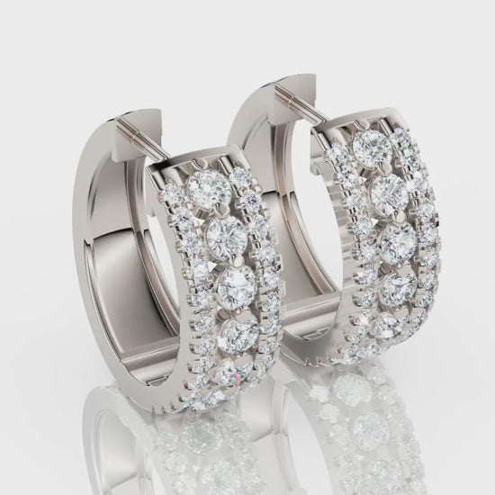 Double Row Diamond Huggie Hoop Earrings in White Gold