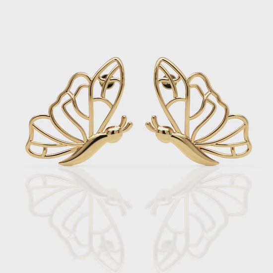 Gold Butterfly Stud Earrings 8mm x 15mm Delicate Insect Earrings