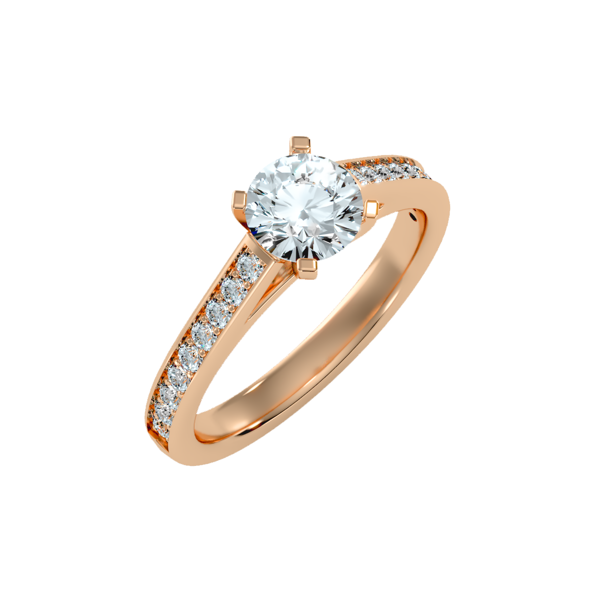 The Yellow Gold Round Diamond Wedding Ring, which uses material, provides a classic design that suits all types of events. The rose gold diamond ring, the white gold diamond ring, and the yellow gold diamond ring all present elegant and fashionable options. The gold diamond ring features detailed designs and top-notch craftsmanship, which guarantee its status as a beloved item for many years.