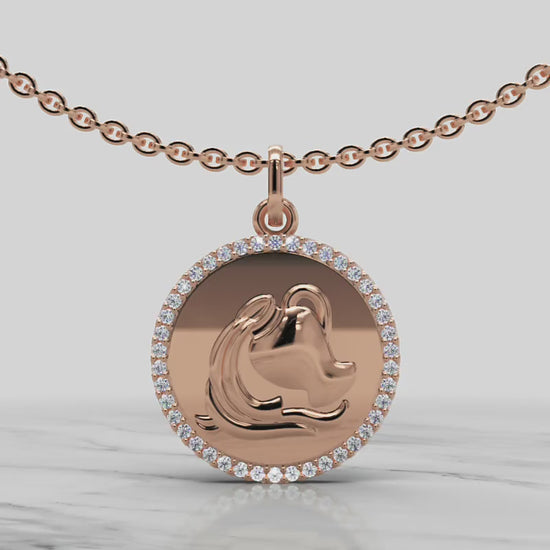 The stunning Sterling Silver Aquarius Zodiac Pendant with Diamond Halo Border will bring everlasting beauty to your jewellery collection. This gold diamond pendant has been skilfully designed to reflect light and enhance your fashion appearance. Jebij provides multiple design options that match different occasions when you choose between yellow gold's warm glow, white gold's smooth design, and rose gold's opulent colour.